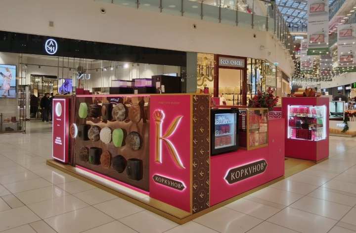 Фото: пресс-служба ТЦ «Авиапарк» Бренд шоколадных изделий «Коркунов» впервые открыл поп-ап корнер в торговом центре «Авиапарк» в Москве. Точка расположена на первом этаже и будет работать до конца марта 2026 года.Пространство в фирменных бордово-золотых оттенках дополняют объемные декоративные конфеты, создающие эффект шоколадной витрины. Здесь покупатели могут приобрести коллекцию конфет «Коркунов» ручной работы, которая не входит в основной ассортимент бренда.