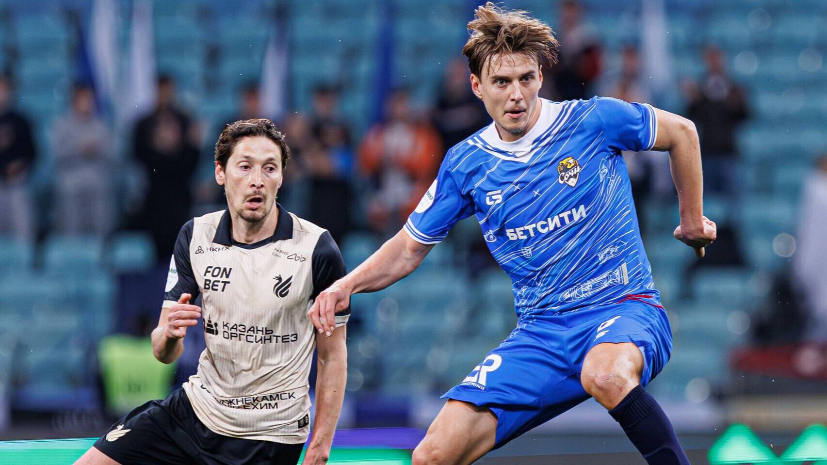 Казанский «Рубин» обыгрывает «Сочи» после первого тайма матча 23‑го тура МИР Российской премьер‑лиги (РПЛ).