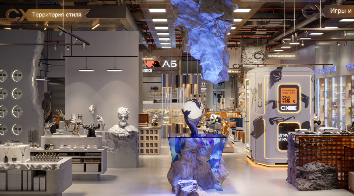 Пространство магазинов будет включать в себя ритейл, услуги и развлечения. Оно будет поделено на семь зон: барберинг и услуги, уход и косметика, стиль и аксессуары, игры и техника, музыка, коллекционирование, впечатления. В ассортименте – нишевая парфюмерия Le Labo и Comme des Garçons, дроны DJI, коллекционные фигурки KAWS, билеты на Формулу-1.